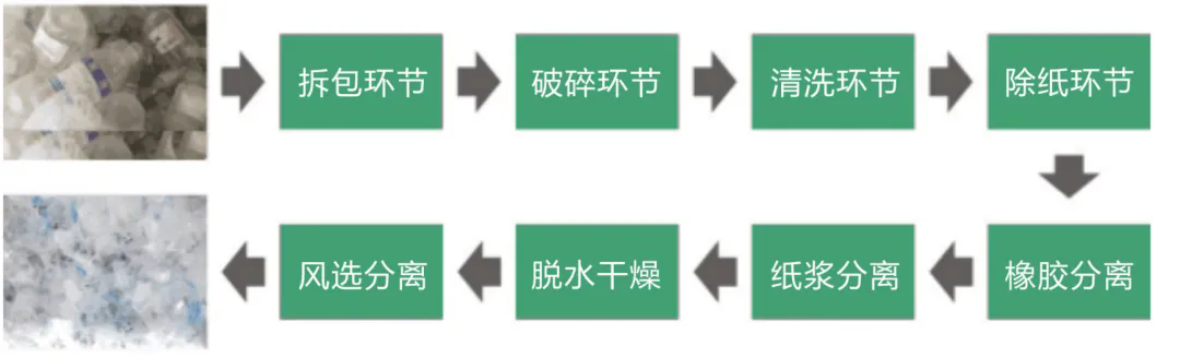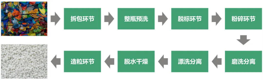 整套設(shè)備從拆包到破碎-清洗-除紙-除橡膠-干燥-分離瓶嘴料均可全自動化流水生產(chǎn)。生產(chǎn)出來的成品顆?;具_(dá)到了新料的品質(zhì),廣泛用于注塑擠出、加工造粒等領(lǐng)域。